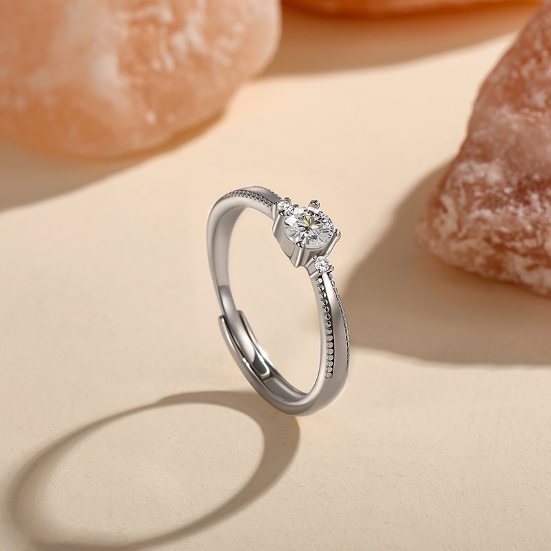 Jeulia Bague de Fiançailles Ronde 3 Pierres Bord Perlé Ajustable