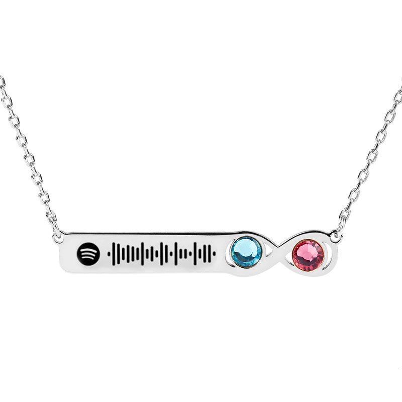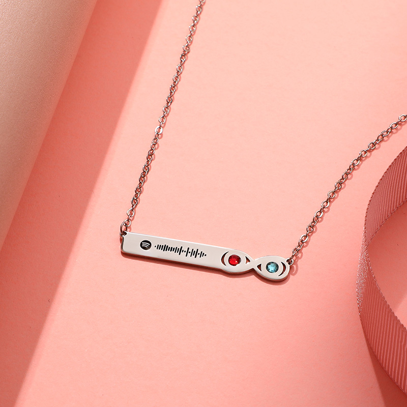Jeulia Collier Code Spotify Scannable Acier inoxydable Personnalisé avec Pierres de Naissance