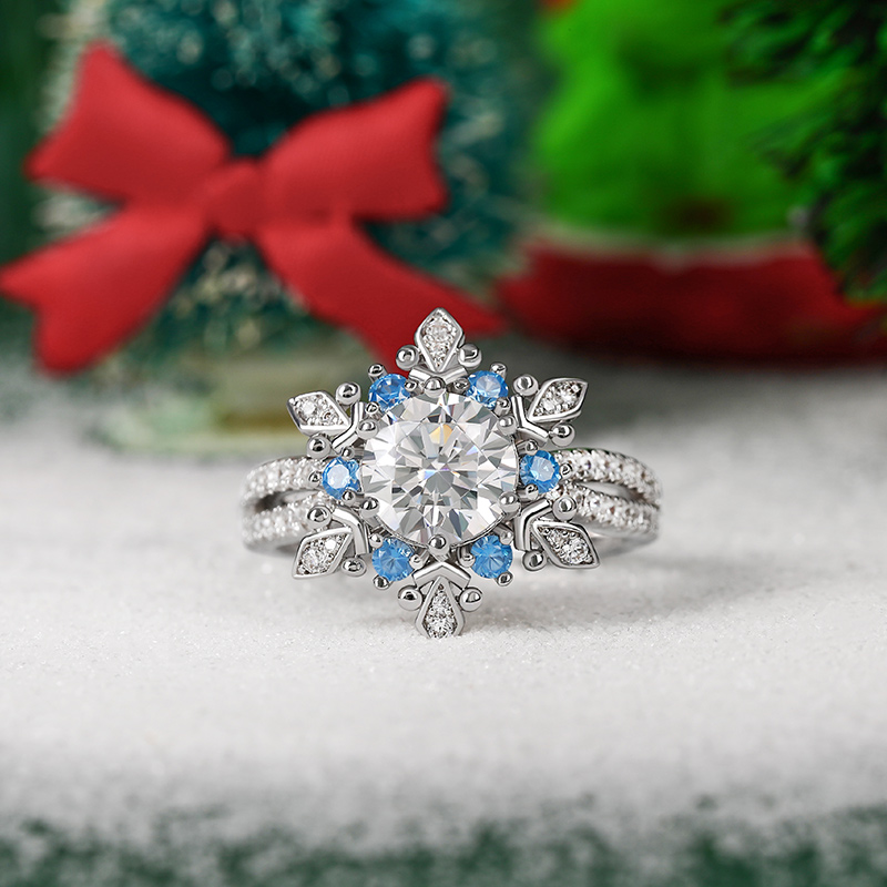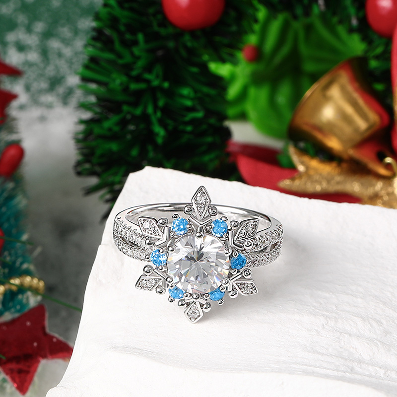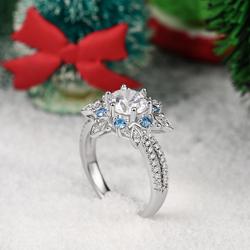 Jeulia Bague Hiver Brillant Flocon de Neige Coupe Ronde en Argent Sterling Noël