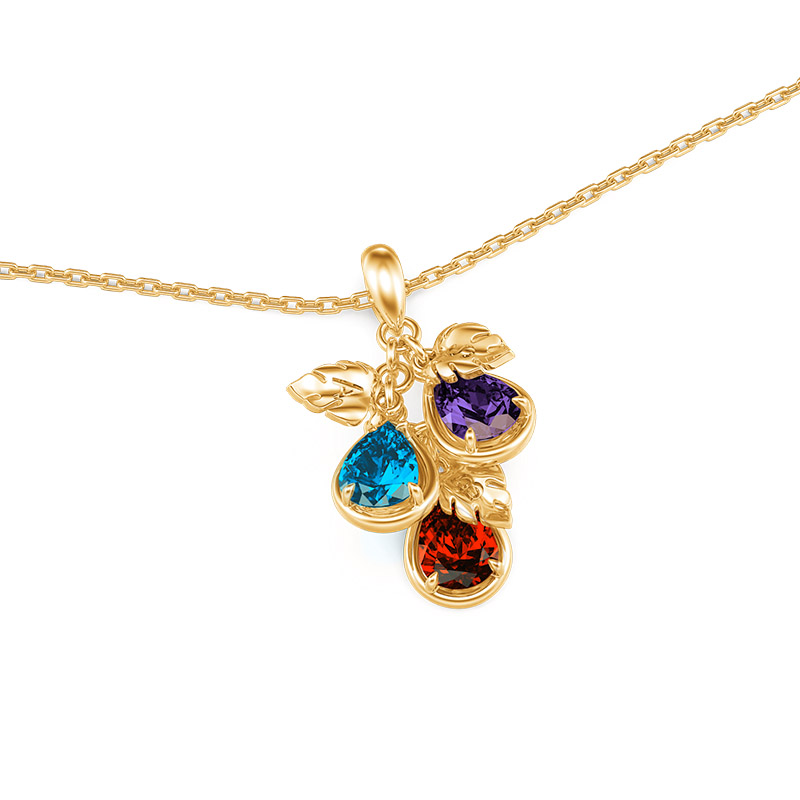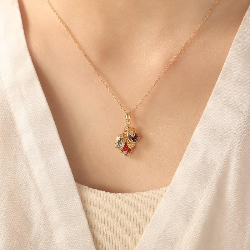 Le design de ce simple collier personnalisé avec une pierre de naissance en forme de poire et une feuille est inspiré par la fécondité des fruits, symbolisant la prospérité et le succès de la famille. Le pendentif prend la forme d’un fruit, avec une chic feuille de bambou en forme de dos de tortue, symbolisant une vie longue et saine. Chaque pierre précieuse est sertie, vous permettant de personnaliser le pendentif selon les pierres de naissance de votre famille, chacune représentant un membre aimé et envoyant de bons vœux et une protection. La couleur du métal précieux peut également être personnalisée selon les préférences personnelles. L’ensemble de la pièce est astucieusement conçu et a une signification profonde, qui est non seulement un bijou exquis, mais aussi un souvenir familial chargé de sentiments.