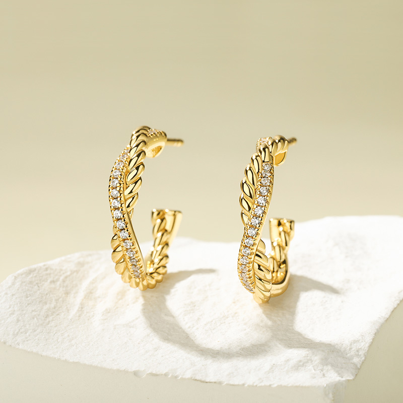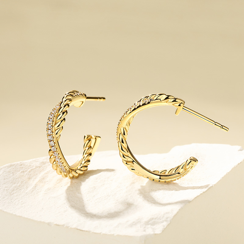 Jeulia Boucles d'oreilles Simple Torsade Corde Coupe ronde Argent Sterling