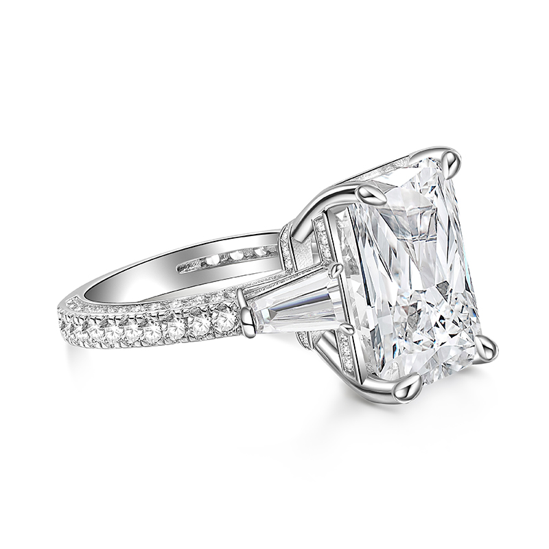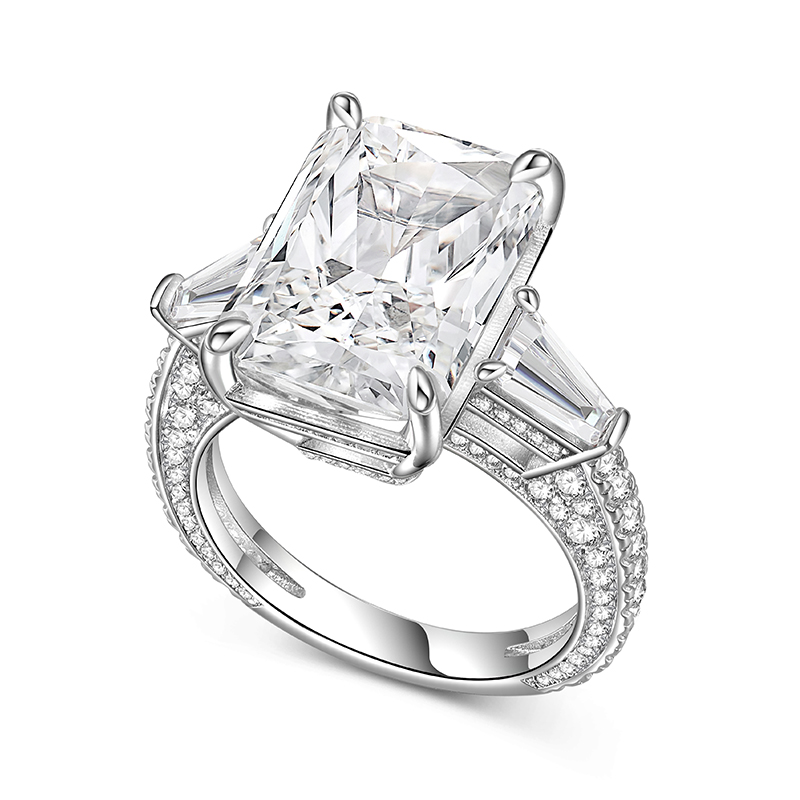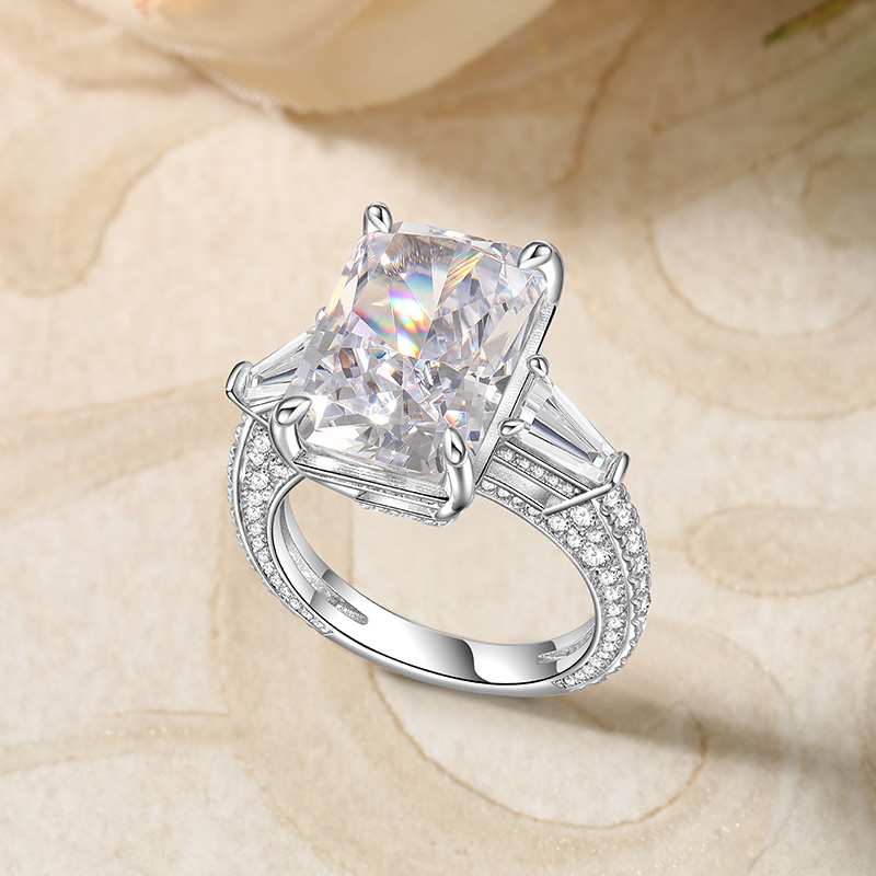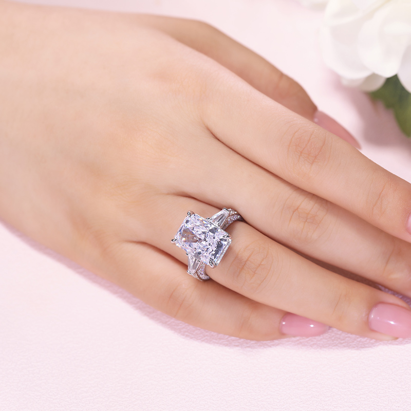 Jeulia Bague de fiançailles Trois pierres Coupe Émeraude Argent Sterling