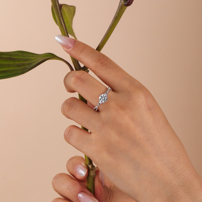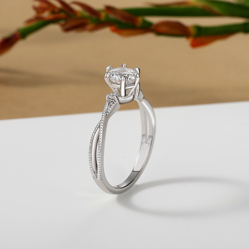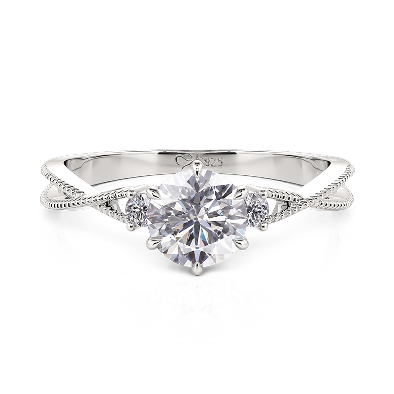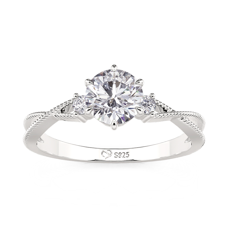 Jeulia Trois pierres Bague de fiançailles Torsadé Milgrain Coupe ronde Argent Sterling