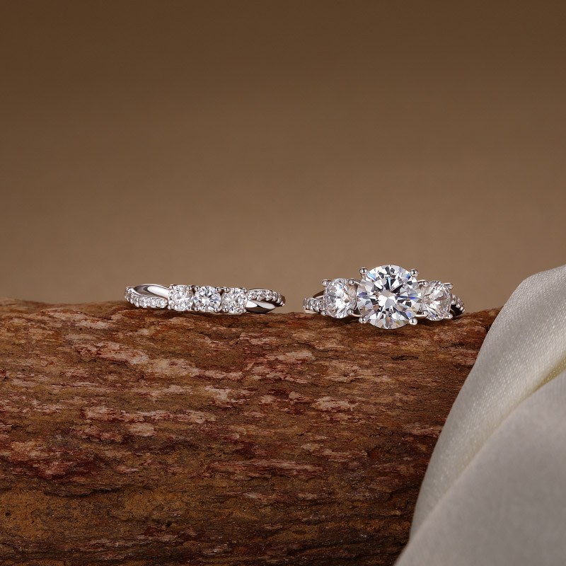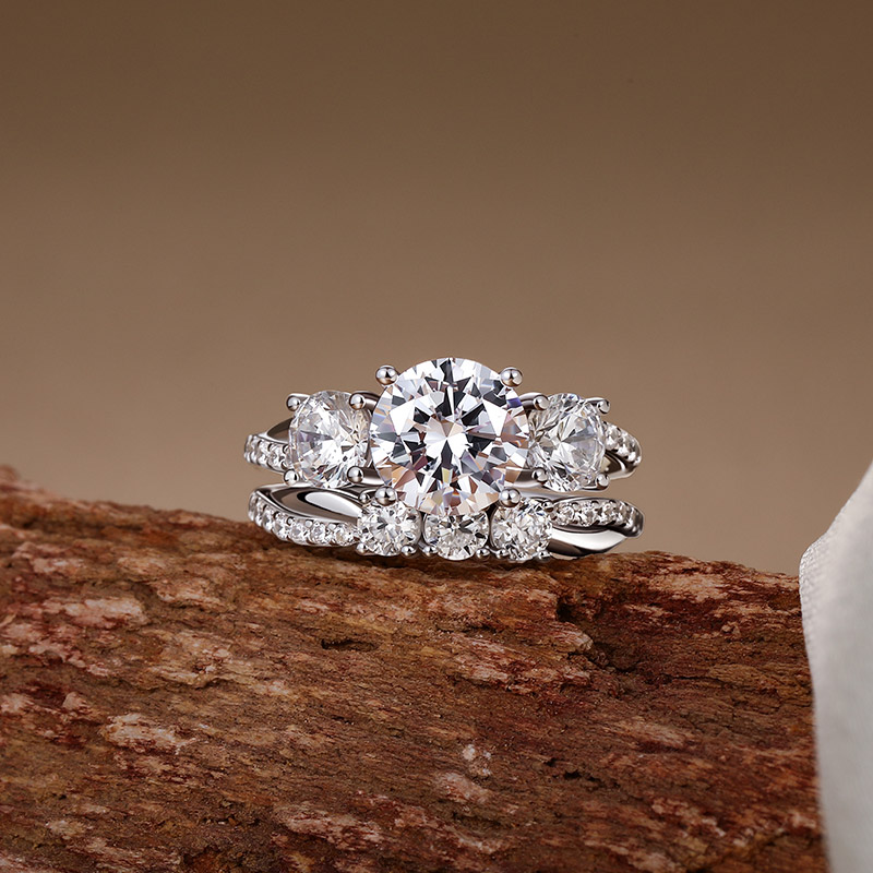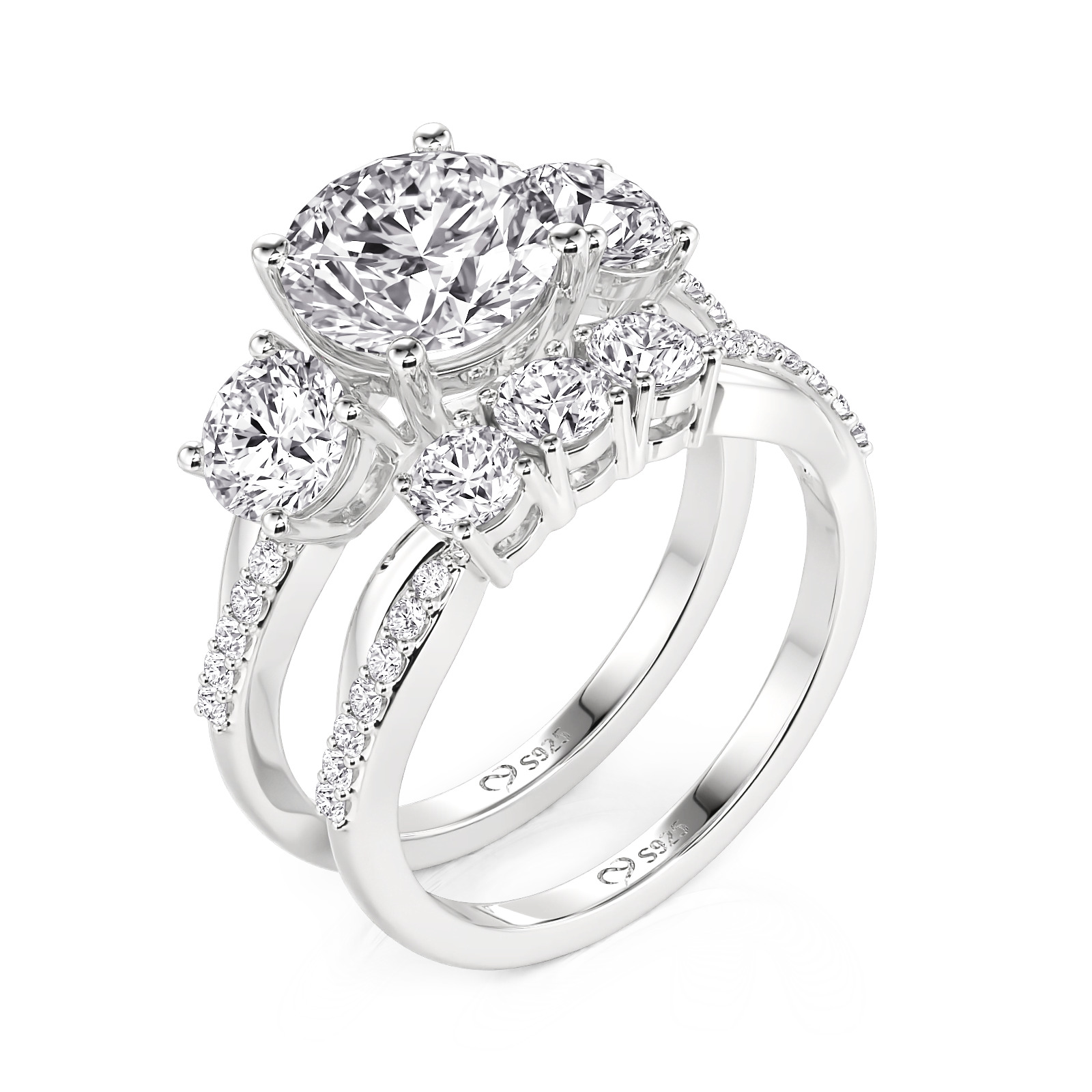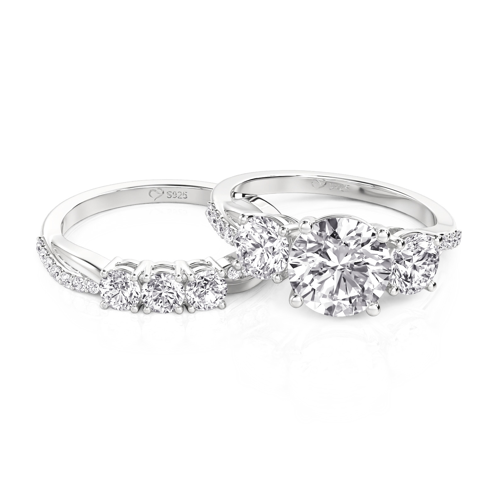 Jeulia Ensemble de Bagues Trois Pierres Coupe Ronde Twist Argent Sterling