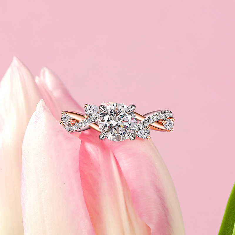 Jeulia Bague de Fiançailles Vigne Tordu Deux Tons Coupe Ronde
