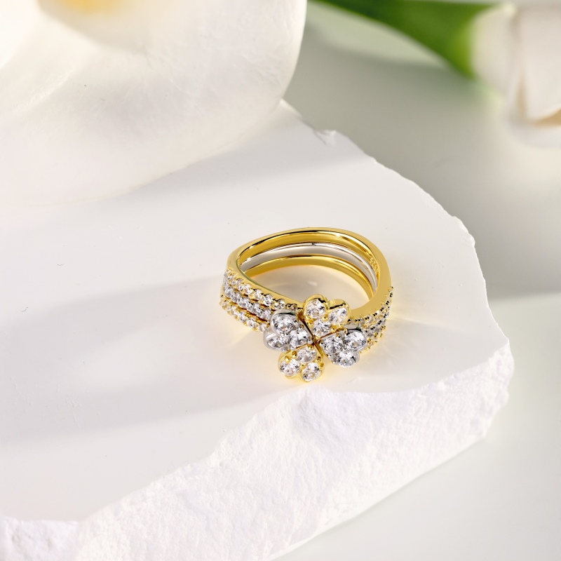 Jeulia Ensemble de bagues Deux tons Trèfle Argent Modèle à quatre feuilles porte-bonheur