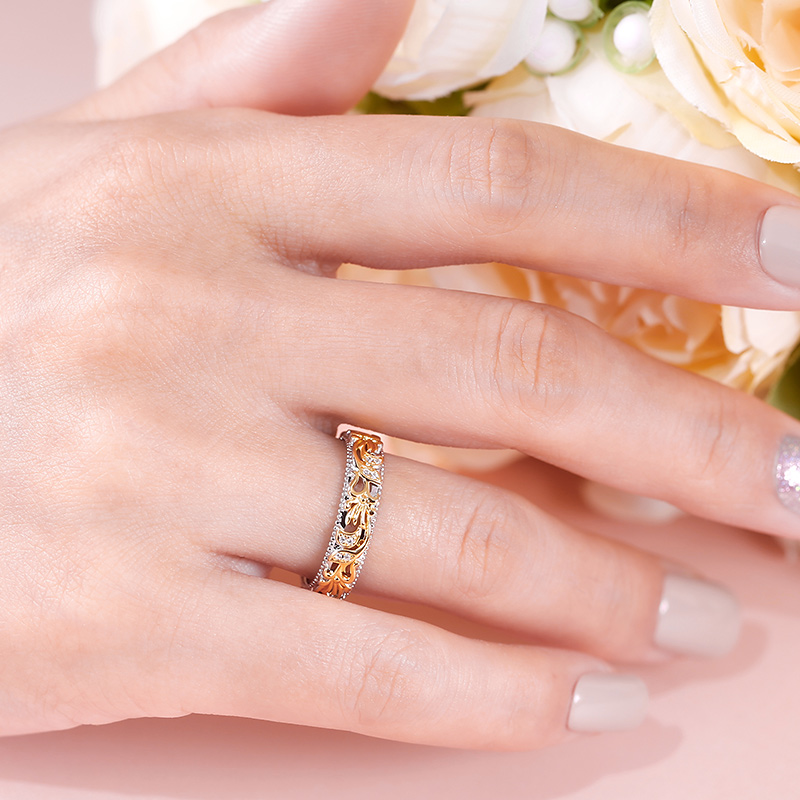 Jeulia Bague Femme Deux Tons Sculpté de Fleurs et Feuilles Unique en Argent Sterling