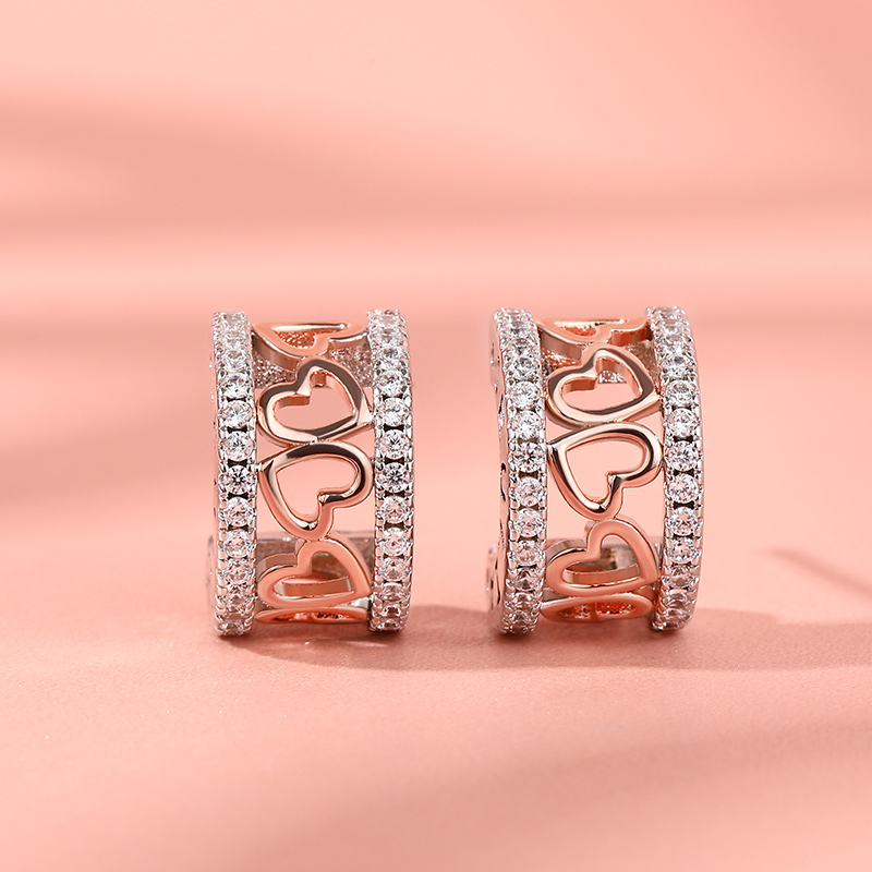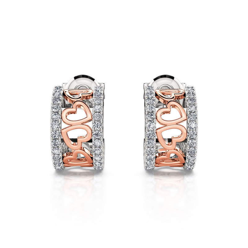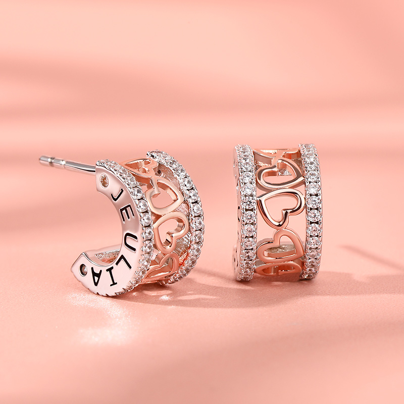Jeulia Boucles d'oreilles Deux tons Coeur en Argent Sterling