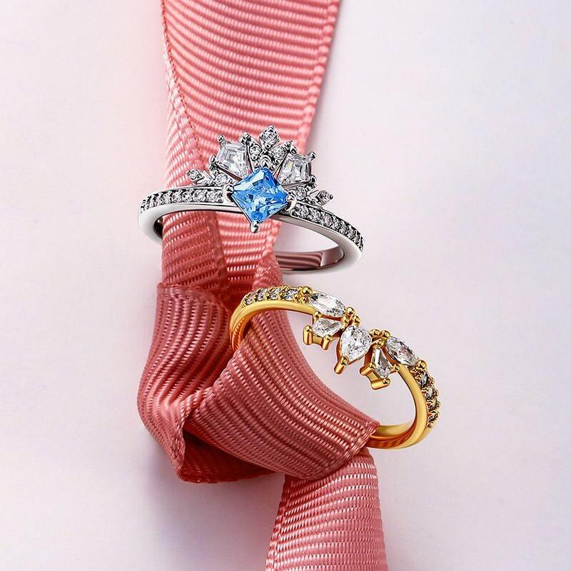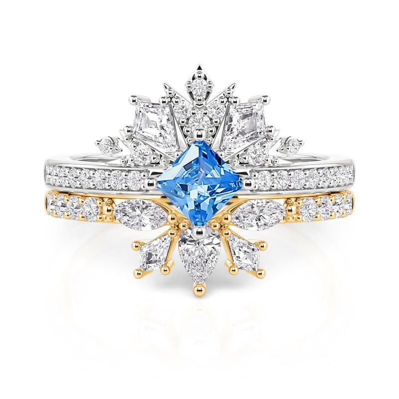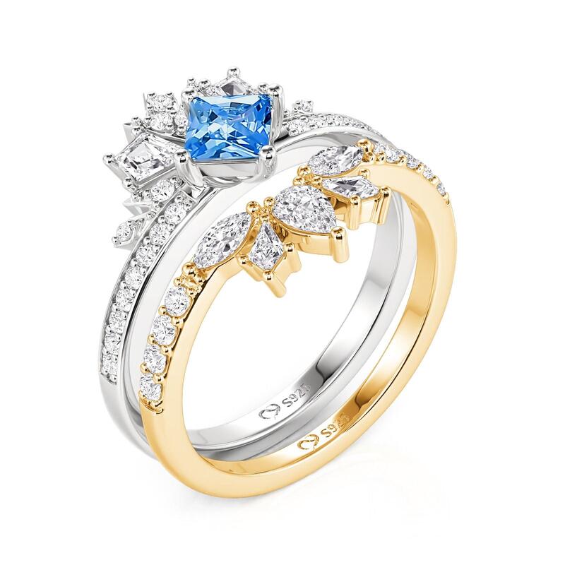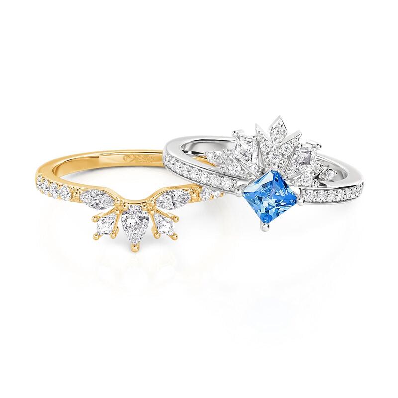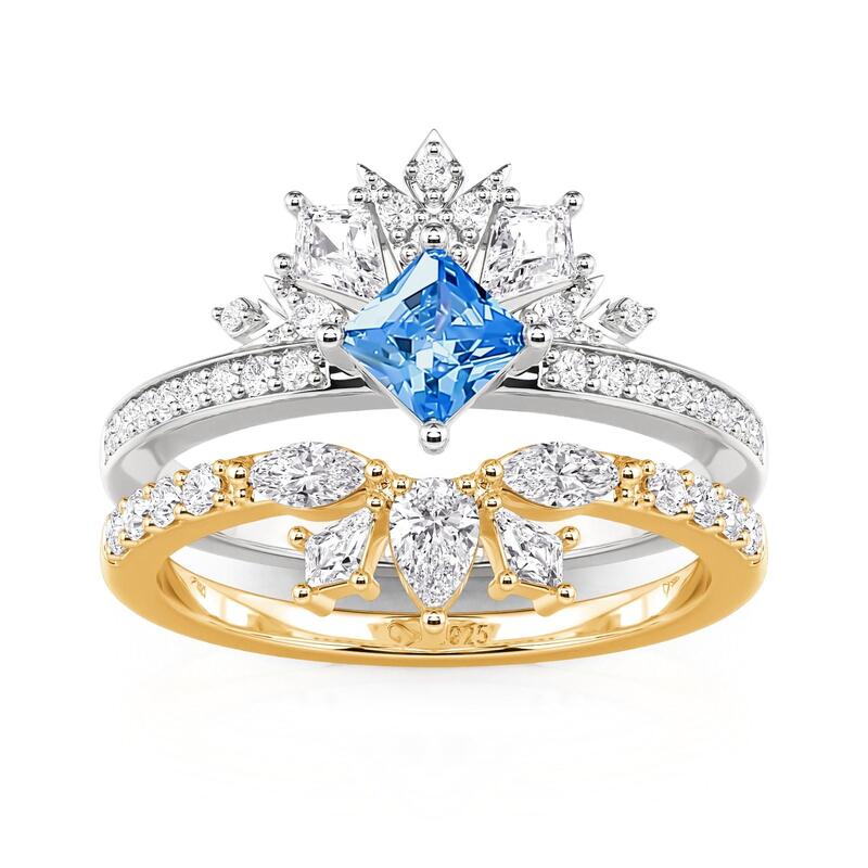 Jeulia Set Bague Couronne Deux Tons Taille Princesse en Argent Sterling