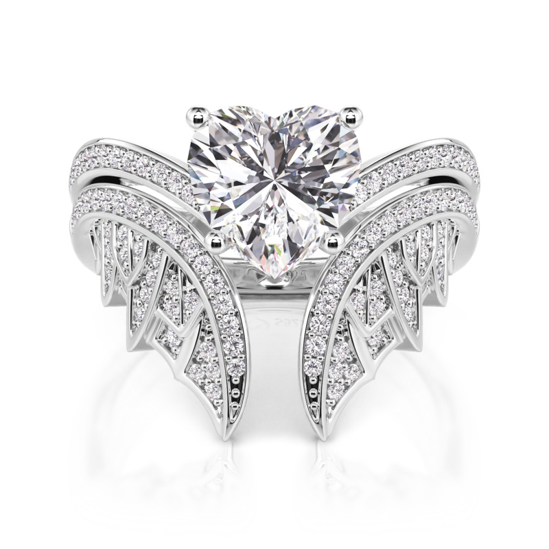 Cet ensemble de bagues de mariage Jeulia Vintage Bat Heart réinterprète les vœux d’amour à travers une esthétique gothique. La bague principale présente une pierre taillée en forme de cœur, dont la silhouette est entourée d’ailes de chauve-souris finement sculptées s’ouvrant en une étreinte protectrice. L’anneau assorti poursuit le motif des chauves-souris, avec des ailes abstraites s’étendant de chaque côté de la bande. Les pierres pavées s’affinent gracieusement du bas vers le bout du doigt. Ce set nuptial peut être porté séparément : la bague principale seule évoque une élégance sombre, tandis que les deux ensemble forment un effet visuel saisissant et un motif d’aile complète. Parfait pour une cérémonie de château envoûtante, le mécanisme d’ouverture et de fermeture des ailes fait également une déclaration audacieuse au quotidien.