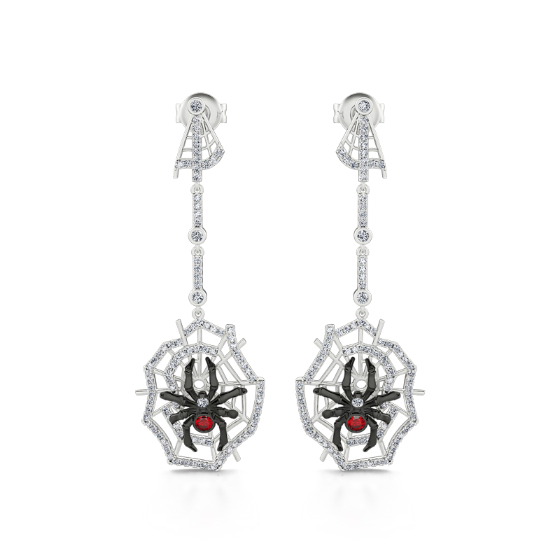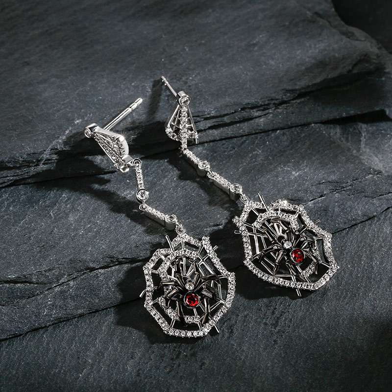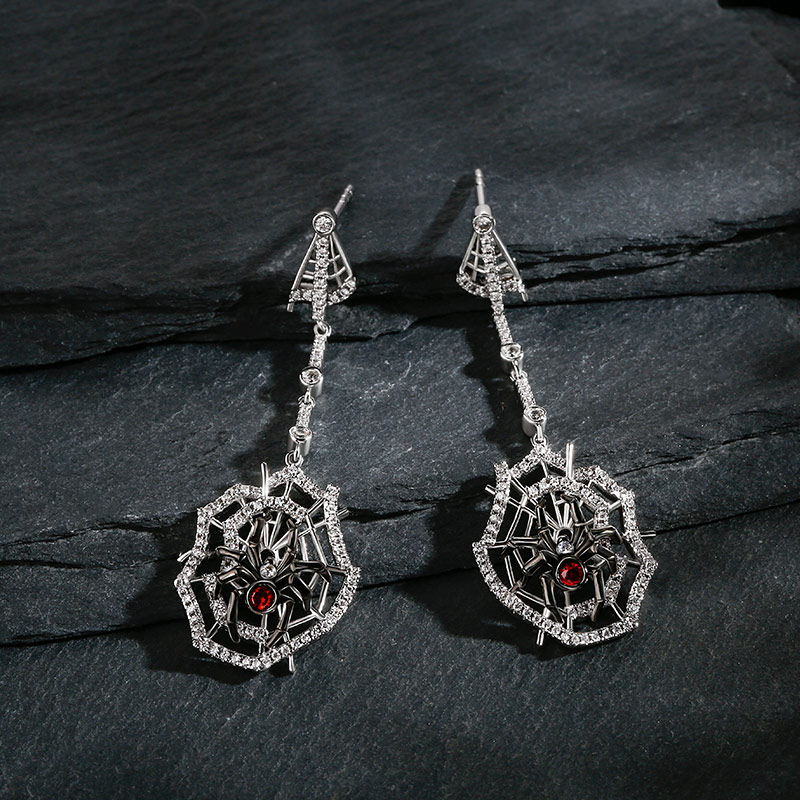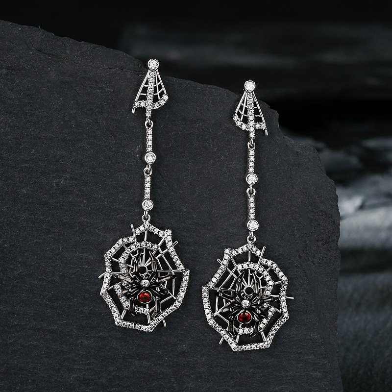 Jeulia Boucles d'oreilles Toile d'araignée Bicolore en Argent Sterling Halloween
