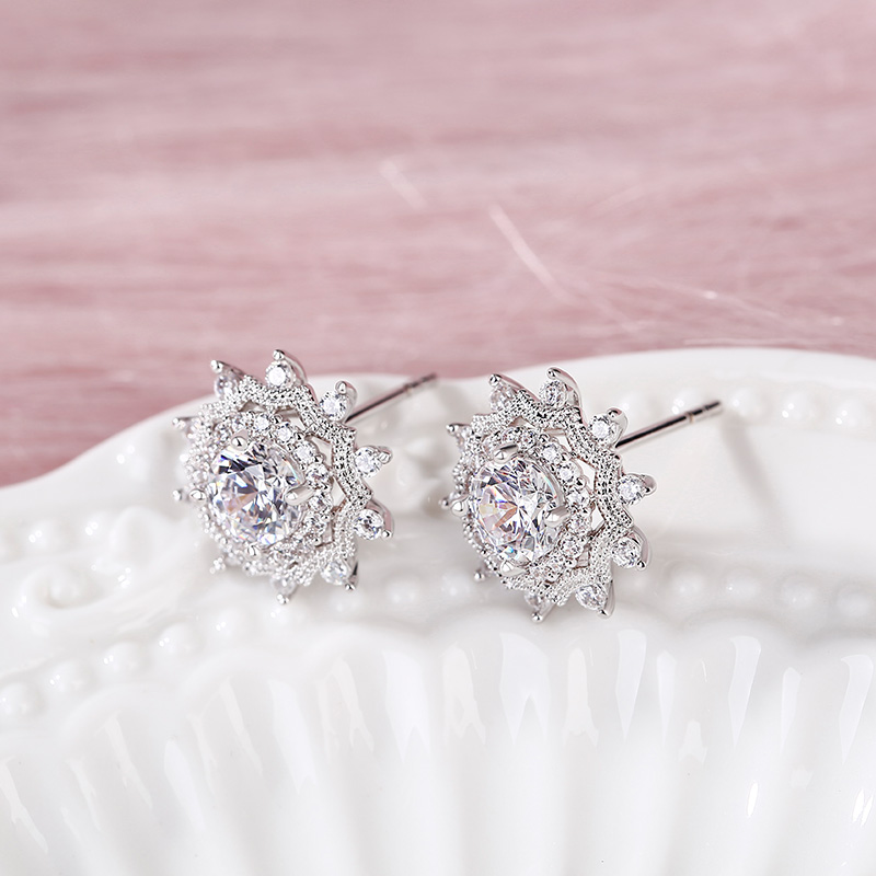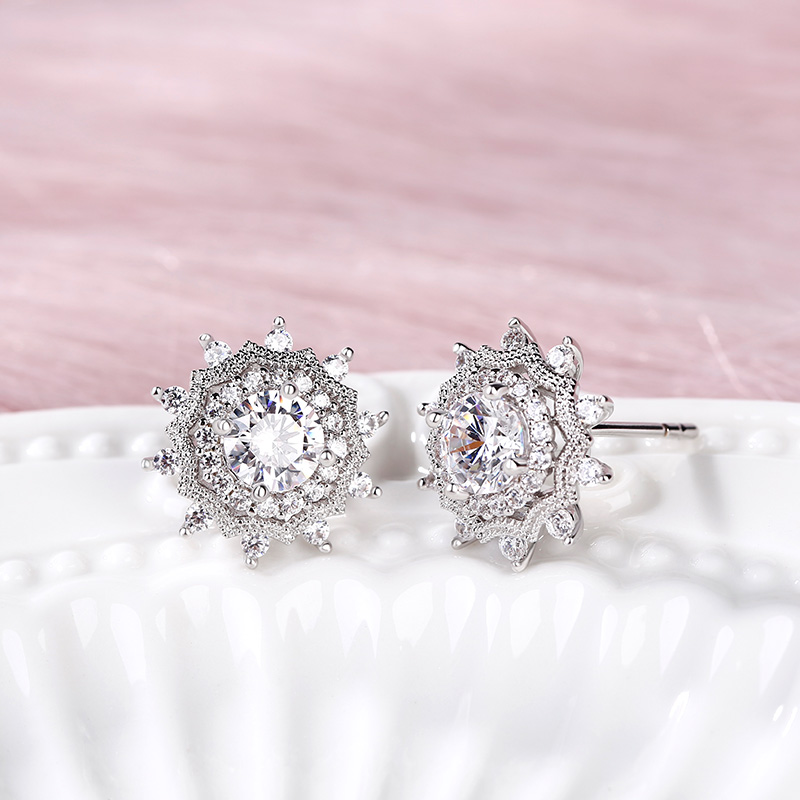 Jeulia Boucles d'Oreilles Flocon de Neige en Argent Sterling Coupe Ronde