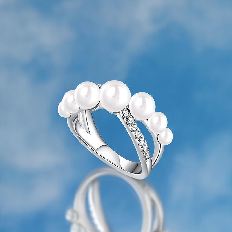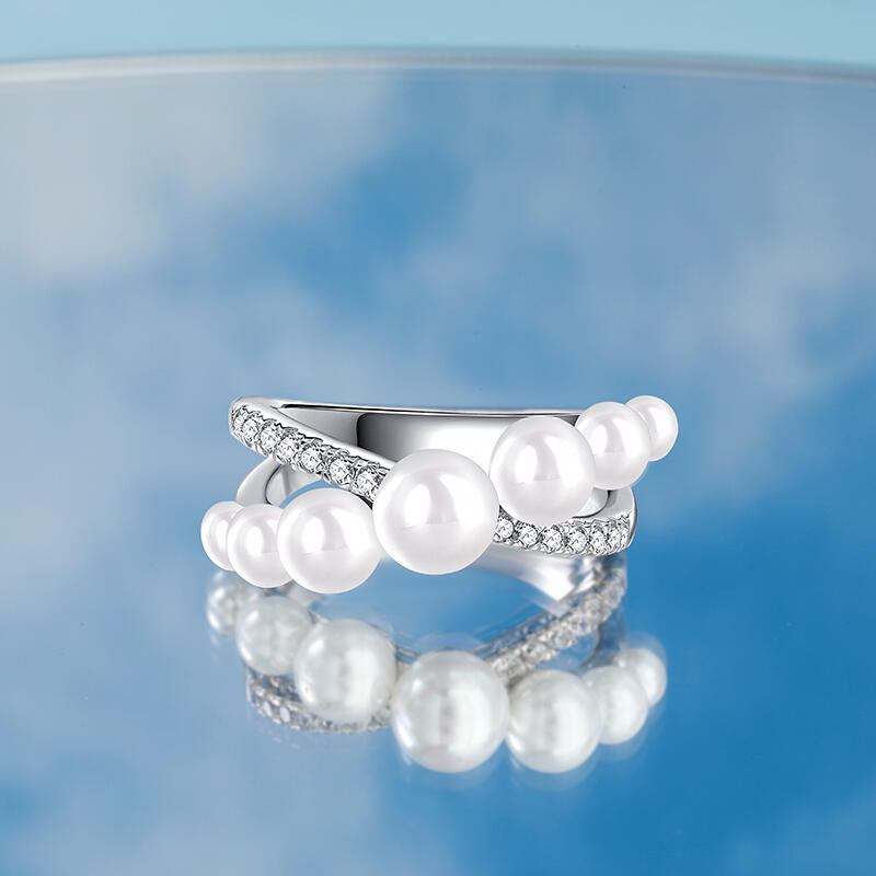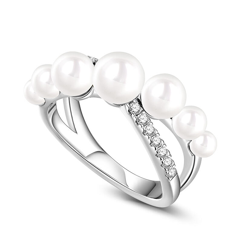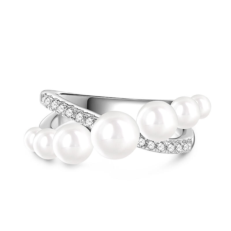 Jeulia Bague Forme X Croisé Perle blanche Argent Sterling