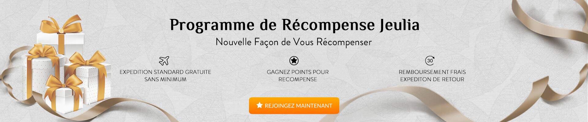 L’adhésion est totalement gratuite, vous ne payez pas de cotisation annuelle, vous inscrivez ou achetez des produits sur notre site, et vous serez automatiquement inscrit au programme de récompense Jeulia.